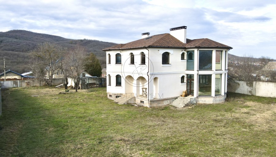 • Основное здание жилого дома общей площадью 396,7 м², 3-этажное. Здание высочайшего качества строительства: железобетонно-каркасная конструкция, наружные стены – блочные 40 см (ракушечник). Фасад - базальтовая плита 100 мм, отштукатурен и покрыт травертином. Высота потолков 3,2 м. Высота цоколя предусматривает возможные максимальные зимние осадки и составляет 1,2 м. В доме установлены дорогие качественные, с 7-ми и 12-ти камерными стеклопакетами окна REHAU с энергосберегающими стеклами и с усиленным армированием, часть из которых являются панорамными. Предусмотрен просторный обслуживаемый чердак, несущая стропильная система - металлокаркас. Кровля мягкая, утепленная. Свободная планировка дома. Проектные планировочные решения: функциональный подвал с инженерными коммуникациями, прачечной, сушильной и гладильной комнатами, оружейной комнатой и винным залом; первый этаж предусматривает два холла 4,7 м² (тамбур) и 6,1 м² (основной), просторную сезонную гардеробную на входе в дом 6,7 м², кабинет – 18,6 м², гостевой и общий совмещенный санузел – 6,5 м², а также большой зал – 71 м², совмещающий зону кухни, зону столовой и зону отдыха с камином (с отдельным выходом на участок); второй этаж предусматривает просторный холл - 6,1 м², санузел для двух спален - 7,2 м², спальня - 21,3 м², спальня - 19 м², мастер спальня - 43,3 м² с отдельным санузлом - 12,5 м² и гардеробной - 12 м². Внутренняя отделка дома не проводилась. Дизайн проект выполнен и может быть представлен покупателю.