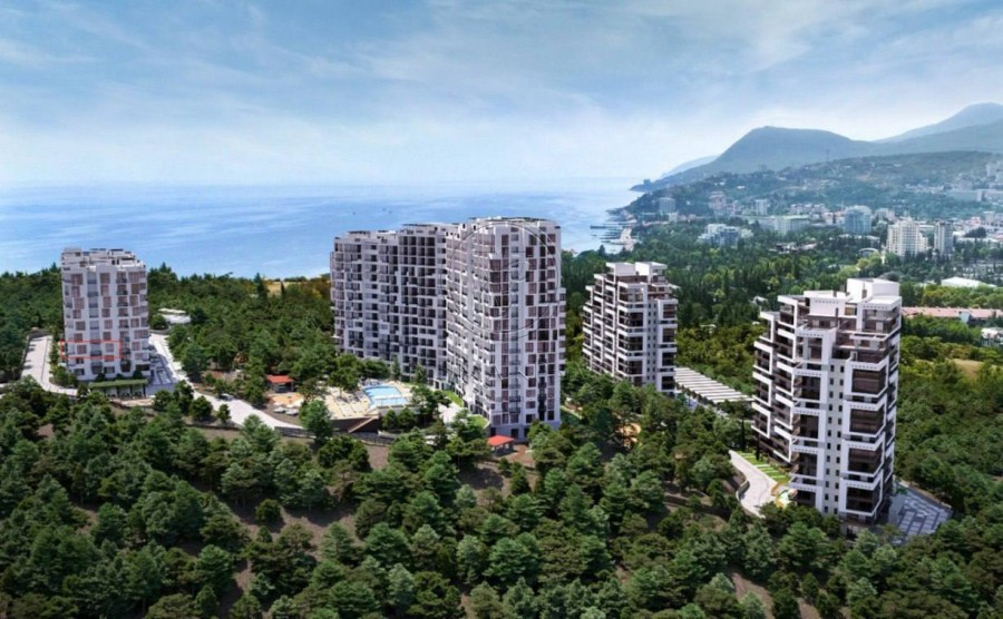 Сам ЖК "Лучистое" окружен крымскими соснами и горами, расположен в уединенном уголке города Алушта на Южном берегу Крыма.