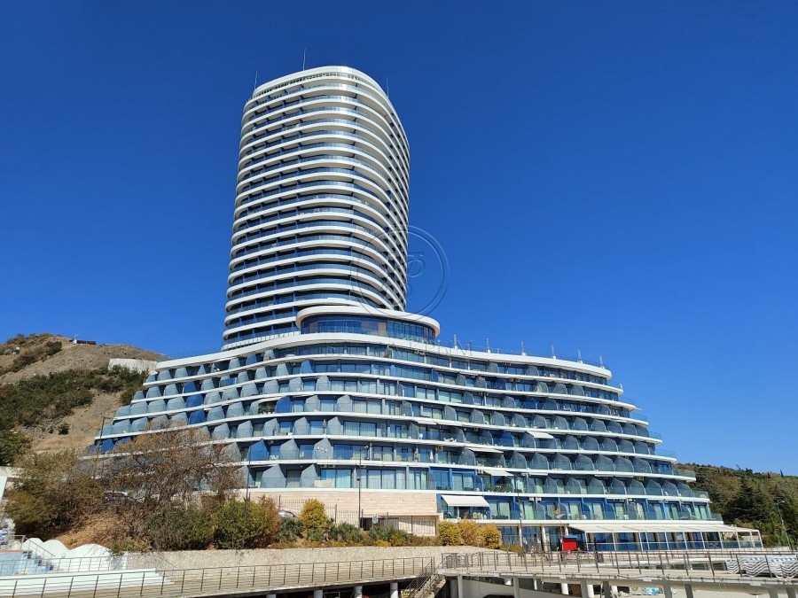 Комплекс апартаментов бизнес-класса "Аю-Даг" Resort & SPA представляет собой единый ансамбль из двух зданий, расположенных на склоне холма.